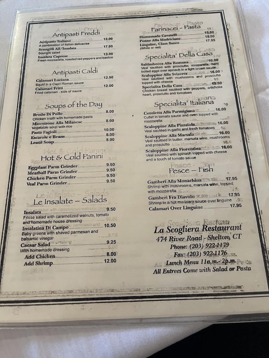 La Scogliera offers a thoughtfully curated Italian menu that balances comforting traditional dishes with a casual, inviting atmosphere. The menu suits a relaxed dinner with friends, an intimate meal, or a lively evening at the bar with carefully crafted drinks.